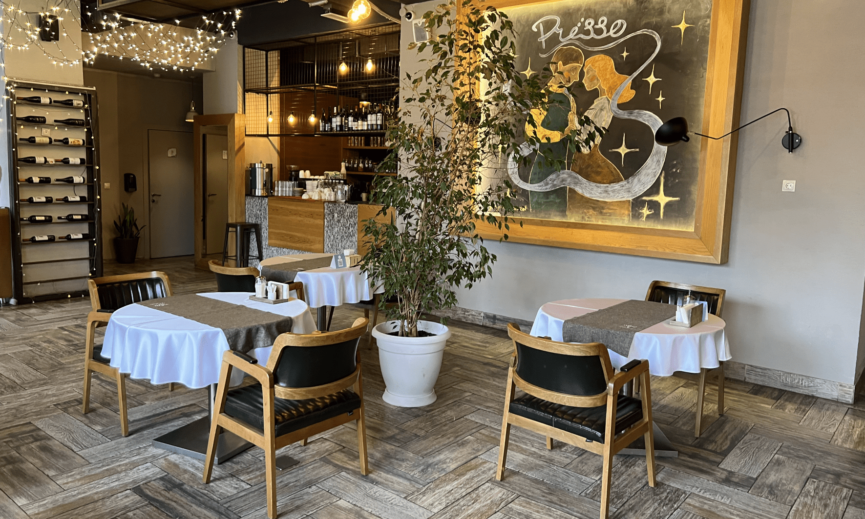 Первую в мире ручную кофе-машину в народе называли «presso». А с итальянского «presso» означает «рядом», «близко». Варить вкусный кофе и быть ближе к любимым - отличный смысл для названия семейного ресторана. Не правда ли?